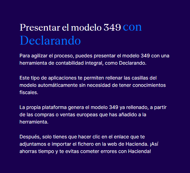 Por tanto, si presentas el Intrastat, también estás obligado a declarar esas operaciones intracomunitarias mediante el modelo 349.